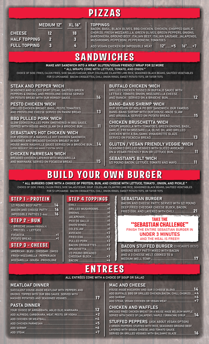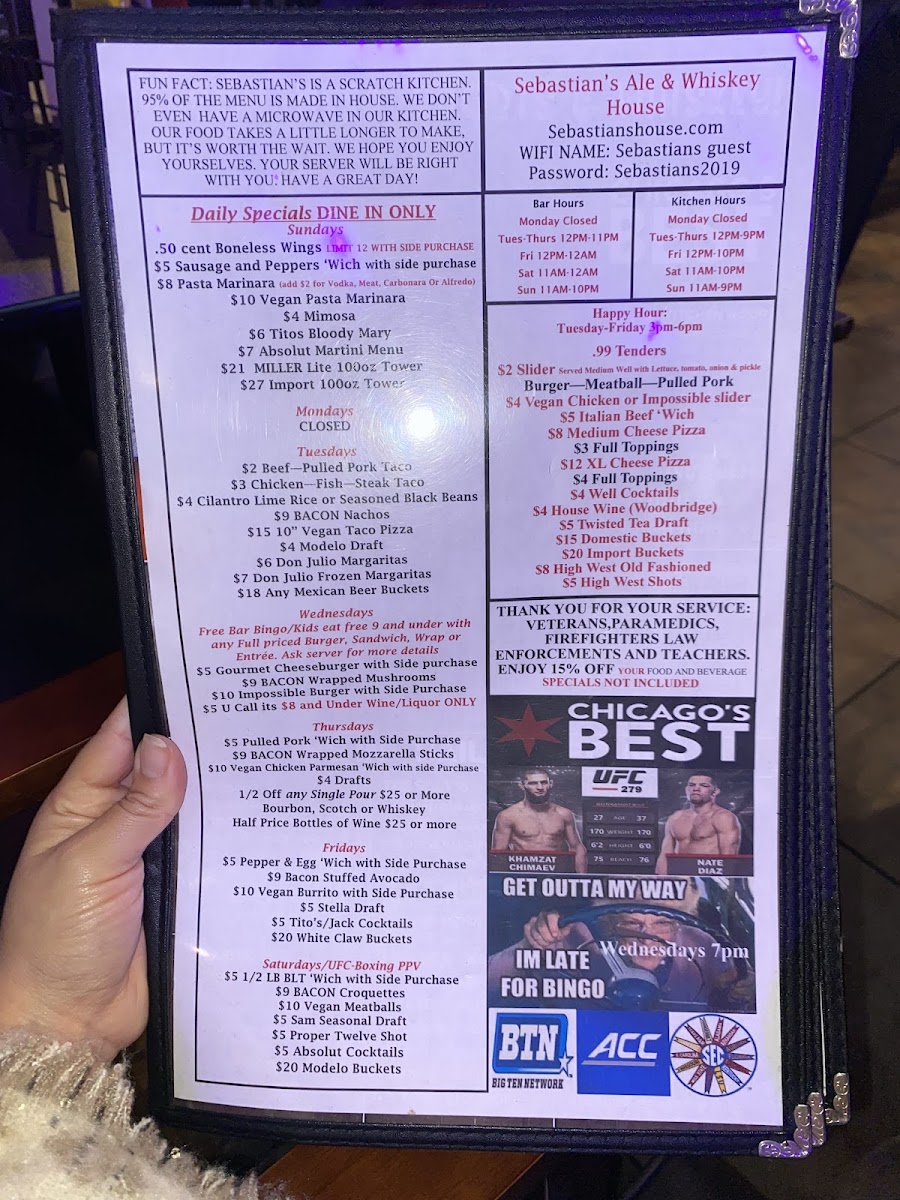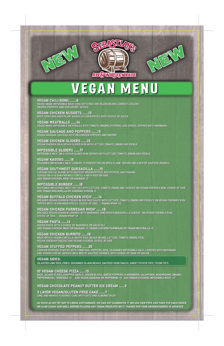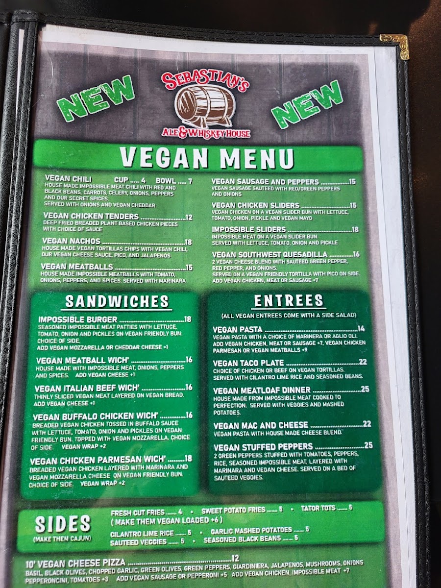 Welcome to Sebastian's Ale and Whiskey House, a culinary gem nestled in Brookfield, IL. Known for its extensive drink selection and diverse menu, Sebastian's offers something for everyone. Their all-day vegan menu showcases delicious options like Vegan Stuffed Peppers and the indulgent Vegan Buffalo Chicken Sandwich, proving that plant-based eating can be both hearty and satisfying.