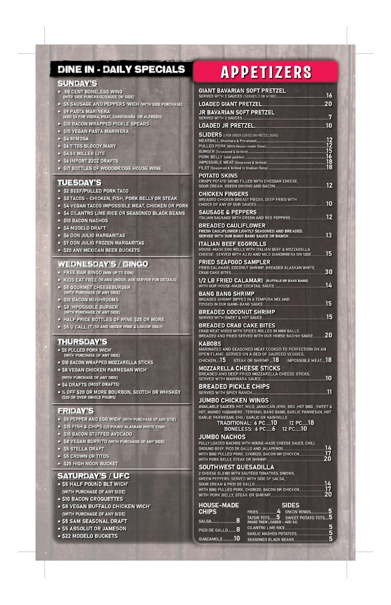 For meat lovers, the Bacon Wrapped Mozzarella Sticks and Jumbo Chicken Wings are must-tries, bursting with flavor and perfect for sharing. Diners rave about the generous portions and affordable prices, making every visit worthwhile.